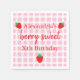 Soirée d'anniversaire aux baies sucrées avec fraises et arrière - plan à motifs roses