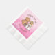 Plaques en papier baby shower rustique pour filles à thème champêtre et occidental. Les graphismes sont une petite fille mignonne dans un casquette de cowboy assis à côté d'un ours en peluche. Arrière - plan rose. serviettes en papier baby shower.