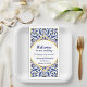 Bienvenue à notre mariage Serviette pour invité à motif décoratif de style céramique italien ou espagnol en bleu marine et jaune. Elle peut être utilisée comme serviette de table ou serviette pour invité dans les toilettes. Personnalisez-la pour n'importe quelle célébration.