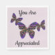 Prévoyez-vous un déjeuner d'appréciation pour les employés ou les bénévoles? Ces serviettes en papier "You Are Appreciated" sont équipées de plusieurs papillons lumineux aux couleurs violet, rose et orange. Les couleurs sont disposées ensemble, donnant à ces beaux animaux un aspect moderne et contemporain. Les couleurs vives des papillons sortent de l'arrière - plan pastel qui peut être customisé si vous le souhaitez. De plus, customisez le texte correspondant à vos besoins professionnels.