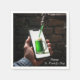 Une main tient un smartphone avec une tasse de bière verte, tandis qu'un robinet semble verser du liquide vert directement dans le téléphone. Le texte peut être modifié.