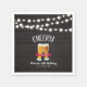 Ajoutez des détails élégants à votre journée spéciale avec cette serviette de soirée personnalisée. Ce design comprend le lettrage "Cheers", des lampes à cordes, des graphismes en verre de bière sur un arrière - plan en bois rustique. Vous pouvez personnaliser le texte pour n'importe quel anniversaire ou événement. Des invitations et des fournitures de fête correspondants sont disponibles dans ma boutique BaraBomDesign.