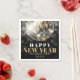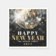 Celebrate in style with this chic New Year’s Eve cocktail napkin featuring a bold black background and festive disco ball details. "Happy New Year" is displayed in a mix of white and gold serif fonts for an elegant and celebratory touch. Below the greeting, there’s space to add the family or host's name along with the year.