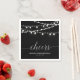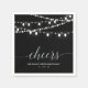 Ajoutez des détails élégants à votre journée spéciale avec cette serviette de soirée personnalisée. Ce design est doté de lumières chic et moderne à cordes et typographie "Cheers" dans le thème argent et noir. Des invitations de fête d'anniversaire et des fournitures de fête sont disponibles dans ma boutique BaraBomDesign.