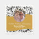Cette serviette jetable d'anniversaire de mariage doré présente un motif de damas tourbillon noir comme l'arrière - plan, une bande ondulée or à travers le centre et un cadre photo personnalisable ovale. Le texte personnalisable vous permet d'ajouter les noms du couple et leur date de mariage.