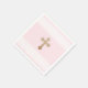 Serviettes en papier croisé rose-arrière - plan rose solide avec croix métallique en faux or au centre. La couleur rose arrière - plan peut être changée en n'importe quelle couleur. Bordé en haut et en bas avec de la dentelle blanche imitation florale. Note : Toutes les images sont imprimées. Pas de dentelle réelle ou métallique. Belles serviettes en papier religieuses parfaites pour les baptêmes, communions, dédicaces et Pâques. Coordonner les invitations au baptême rose et d'autres styles de serviette religieuse sont dans notre boutique Zazzle.com/angela65.