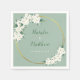 Serviette En Papier Blanc Floral Vert Chinoiserie Motif Mariage