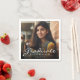 Serviettes modernes de fête de graduation avec une photo personnalisée avec superposition de texte. Remplacez facilement l'exemple d'image par une photo de votre diplômé. Le mot "Graduate" apparaît en écriture manuscrite blanche, avec le nom, l'école, et l'année de graduation ci-dessous dans la police sans serif. Une superposition en dégradé noir aide à faire apparaître le texte blanc. Idéal pour obtenir un diplôme d'études secondaires ou collégiales.