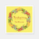Prenez un dîner Thanksgiving béni et festif avec ces serviettes adorables. Doté d'un arrière - plan couleur crème avec une couronne rouge et or colorée, avec "Thanksgiving Blessings" en belle police rouge et or. Votre nom est écrit en dessous dans une belle police rouge.
