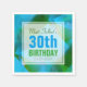 Beau arrière - plan abstrait (aqua, turquoise, carrés transparents de couleur verte) avec un tag carré blanc semi-transparent (minuscule bordure transparente) pour nom, date et anniversaire. Tout est personnalisable pour ces serviettes en papier de 30e anniversaire. Livre d'or correspondant (carnet en spirale).