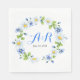 Serviette En Papier Bleu blanc Monogramme marguerite Mariage floral