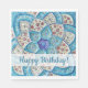 Belle, traditionnelle marocaine turquoise Bleu, blanc, rouge saumon Moyen-Orient motif Joyeux Napkin Anniversaire. Romantique, vibrante, traditionnelle motif de pétales floraux marocains, cette image d'une assiette peinte à la main dans les couleurs traditionnelles bleu clair, turquoise, blanc, rouge saumon, bleu roi. Marocain+bleu+blanc, Marocain+bleu+blanc+rouge, traditionnel+marocain+motif, antique+tuile+motifs, marocain+motif, fleur+pétales+motif, vintage+méditerran, main+peint+photo+motif, marine+bleu, saumon+rouge, bleu, royal+bleu, ciel+bleu, pétales, bleu, blanc, fleur, vintage, marocain image, girly, coloré, brillant