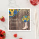 Doux serviettes en papier de fête de 16 ans avec bottes rustiques de cowboy, tournesols jaune vif, et de beaux roses bleus sur un arrière - plan en bois brun foncé. Personnalisez avec un nom et une date de fête.