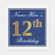 Serviette En Papier Bleu Élégant, 12e anniversaire de Faux Gold; Nom p