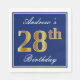 Serviette En Papier Bleu Élégant, Faux Gold 28e anniversaire; Nom pers