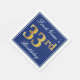 Cette conception simple et élégante de serviette en papier comporte un message comme "33e anniversaire de FirstName" (le "33e" ayant une fausse couleur dorée) dans une zone carré de couleur bleue avec un contour de bordure simple. Le nom est en texte de type script de couleur blanche et peut être personnalisé. Des serviettes comme celles-ci pourraient peut-être être utilisées à une fête d'anniversaire pour quelqu'un qui célèbre son trente-troisième anniversaire. [~Z0000141]