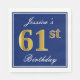 Serviette En Papier Bleu Élégant, Faux Gold 61e anniversaire; Nom pers