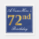 Cette conception simple et élégante de serviette en papier comporte un message comme "AnameHere’s 72nd Birthday" (avec le "72nd" ayant une fausse couleur dorée) dans une zone carré de couleur bleue avec un contour de bordure simple. Le nom est en texte de type script de couleur blanche et peut être customisé. Des serviettes comme celles-ci pourraient peut-être être utilisées à une fête d'anniversaire pour quelqu'un qui célèbre son soixante-douzième anniversaire. [~Z0000141]