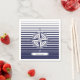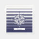 Un design nautique avec un rose boussole orné sur bandes bleues et blanches et un étiquette avec texte personnalisable.