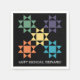 Ces serviettes en papier sont prêtes à être personnalisées avec votre propre message. Elles présentent des illustrations de blocs de courtepointes Ohio Star Amish en vert, violet, jaune, orange et bleu contre un arrière - plan noir, et sont parfaites pour les fêtes de couette ou de courtepointe événements spéciaux.
