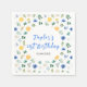 This beautiful and elegant napkin features watercolor blue, yellow and white flowers with foliage. The text combines handwritten script and serif fonts for a stylish and modern look. This is perfect for a spring or summer rustic birthday party.