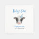 Une serviette rustique en papier de fête d'anniversaire avec de l'aquarelle illustrant une vache à bébé avec un casquette de fête bleu.