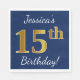 Ce design simple de serviette en papier comporte un message comme "15e anniversaire de Jessica !", avec le "15e" à l’allure fausse or, sur un arrière - plan de couleur bleue. Le nom peut être personnalisé. Il pourrait être utilisé à une fête d'anniversaire pour quelqu'un qui célèbre son quinzième anniversaire. [~Z0000083]