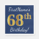 Serviette En Papier Blue, Faux Gold 68e anniversaire + Nom personnalis