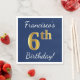 Ce simple design de serviette en papier comporte un message comme "6e anniversaire de Francisco!", avec le "6e" ayant un faux aspect doré, sur un arrière - plan de couleur bleue. Le nom peut être personnalisé. Il pourrait être utilisé à une fête d'anniversaire pour quelqu'un qui célèbre son sixième anniversaire. [~Z0000083]