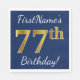 Serviette En Papier Blue, Faux Gold 77e anniversaire + Nom personnalis