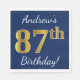 Serviette En Papier Blue, Faux Gold 87e anniversaire + Nom personnalis