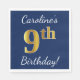Serviette En Papier Blue, Faux Gold 9e anniversaire + Nom personnalisé