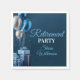 A stylish blue balloon and gift Napkin for a retirement party, farewell party celebration. Features blue and silver balloons with blue and white text.