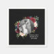 Superbes et élégantes fleurs rousses, bordeaux et bleues sur une serviette noire arrière - plan. Absolument beau. Customisez avec votre photo fiançailles entourée d'une belle florale pour correspondre aux plaques en papier que nous offrons également dans notre boutique. Si élégant et moderne. Parfait pour votre journée spéciale. Économisez sur votre budget en envoyant les cartes postales correspondantes "Enregistrer la date".