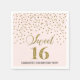 Serviettes personnalisables pour la fête douce de 16 ans avec des confettis de parties scintillant rose pâle et or.