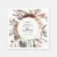 Cette serviette en papier pour la douche de la mariée dans un style bohème unique et merveilleusement féminin présente une palette de couleurs neutres somptueuses en beige, vert, pêche et touches de rose et de terracotta ainsi que des florales accentuées de marsala burgundy. Les charmants éléments d'aquarelle ont un attrait organique inspiré de la nature. Un cadre rond avec accent doré ajoute de l'élégance au design. Personnalisez le modèle de texte avec les détails de votre événement. Ces serviettes sont disponibles en 3 tailles : présentées ici en taille cocktail ; également disponibles en tailles déjeuner et dîner.