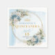 Elevate your Quinceañera celebration with these elegant paper napkins, beautifully designed with watercolor dusty blue flowers, soft eucalyptus greenery, and a shimmering gold glitter frame. The delicate floral arrangements in boho, bohemian, or watercolor styles paired with elegant script lettering create a refined, sophisticated look that perfectly complements any pastel or dusty blue themed party.