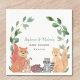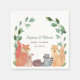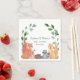 Les serviettes en papier baby shower du couple sont décorées d'animaux de bois aquarellés. Ces amis forestiers, renard, raton laveur, hérisson, lapin et écureuil sont entourés de verdure rustique. Facile à personnaliser. Aquarelle originale © Michele Davies.