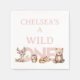Pink Woodland Wild One 1st Birthday Paper Napkin Sweet girls wild one 1st anniversaire napkin mettant en vedette divers animaux de bois mignons et un gros texte rose.