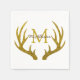 Élégantes serviettes en papier rustiques pour un bar à la maison, avec une silhouette de bois de cerf imprimée en faux paillettes or sur fond blanc et vos textes de monogramme personnalisés. Obtenez le look fermier glamour !
