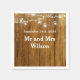 Cette serviette de cocktail Mariage Rustic Wood Mason Lights est une vue vintage simple et élégante des lampes à cordes sur une grange en bois avec jarres en maçon. Ce thème boho utilise la typographie moderne.