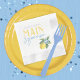 Élégantes et douces serviettes en papier pour cocktail personnalisé Citron Main Squeeze. Personnalisez avec le nom de la future mariée. Présentant de belles fleurs aquarelles élégantes de couleur ardoise poussiéreuse et un citron jaune doux.