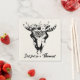Serviettes de cocktail de mariage personnalisées boho avec crâne de bétail à crête florale. Ajoutez le nom de n'importe quel couple pour un cadeau ou une occasion spéciale. Visitez ma boutique pour toute la collection de dessins de tampons en bois