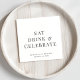 Serviettes modernes pour votre réception de mariage, dîner de répétition, fêtes de fiançailles, douches en couple et autres événements mariages avec "Eat Drink & Celebrate", vos prénoms et votre date mariage dans la typographie serif élégante.