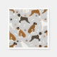 Les chiens mignons Boxer s'assoient et se tiennent avec des manteaux brins, blancs et fawn avec des os de chien éparpillés et des motifs de pawprints.