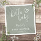 Une serviette minimaliste moderne en papier baby shower avec un mignon coeur dessiné à la main et une typographie élégante sur un arrière - plan vert sauge neutre par rapport au genre. Conçu par Thisisnotme©