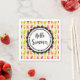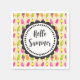 Serviettes en papier avec l'image d'un motif d'été de popsicles et de crème glacée en aquarelles. Bonjour été écrit dans une police tendance amusante dans un cadre lunatique rond.