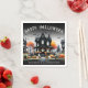 Ajoutez une touche ludique à vos festivités d'Halloween avec ces serviettes de fête amusantes et festives. Présentant un design simple en noir et blanc, les serviettes présentent une maison hantée aux accents orange d'un arbre éffrayant, de citrouilles et de lanternes jack-o'. De mignons détails de fantôme et de chauve-souris complètent le look fantaisiste. La typographie présente une police serif vintage et élégante qui ajoute une touche de sophistication éffrayante au design. Parfaits pour une fête annuelle d'Halloween ou tout événement éffrayant, ces serviettes sont à la fois amusantes et fonctionnelles. Amusant Cute Éffrayant Maison Hantée Ghost Bats Orange Black Halloween Party Napkin.