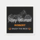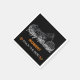 Joyeuses serviettes de fête Retraite sur noir avec silhouette vintage de moto et flammes orange avec message Enjoy the Ride. Personnalisez avec le nom de votre motard à la retraite!