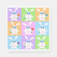 Une série de lapins mignons et colorés tenant des fleurs. Ce design semble vraiment efficace sur ces serviettes en papier